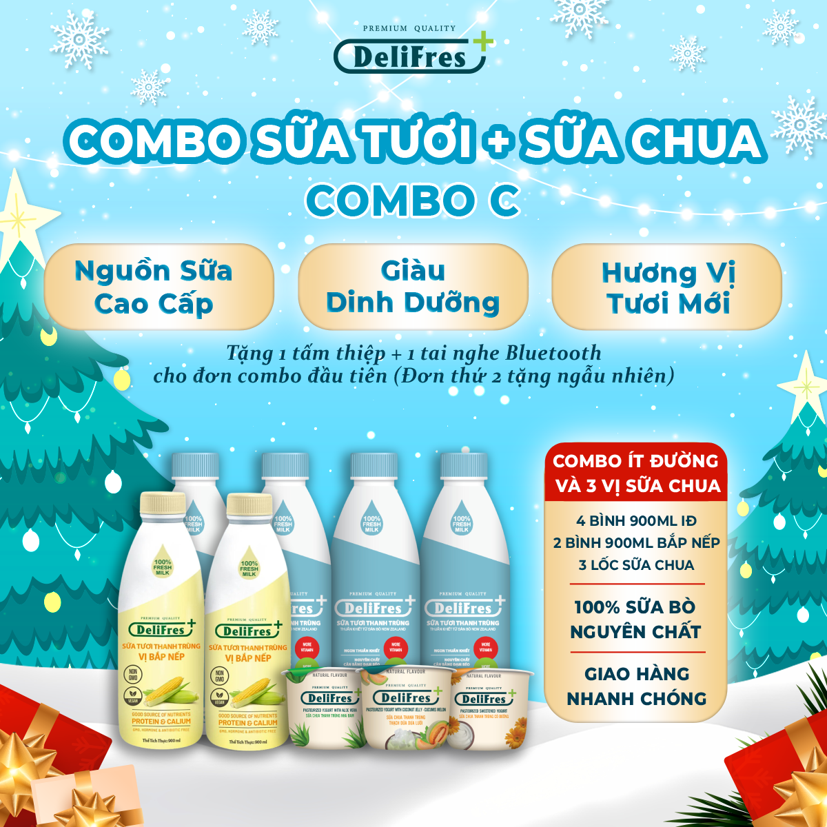 ![[COMBO SỮA TƯƠI] Combo C - Sữa tươi thanh trùng DeliFres+ không đường / ít đường / vị bắp nếp | 1L8 & 900ML](https://shop.delifres.com.vn/wp-content/uploads/2025/12/CB-ST-C-300x300.png)